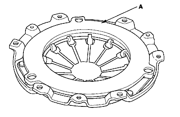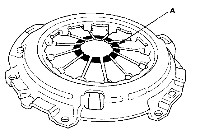 4. Inspect the fingers of the diaphragm spring (A) for wear at the release bearing contact area.