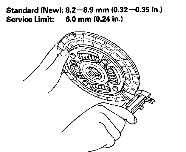 9. Measure the clutch disc thickness. If the thickness is less than the service limit, replace the clutch disc.