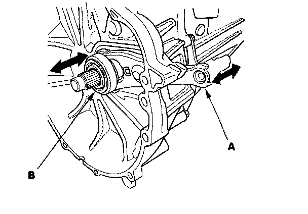 8. Move the release fork (A) right and left to make sure that it fits properly against the release bearing (B) and that the release bearing slides smoothly.