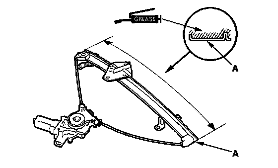 7. Apply multipurpose grease to the sliding surfaces of the regulator (A) where shown.