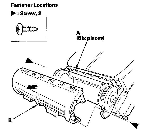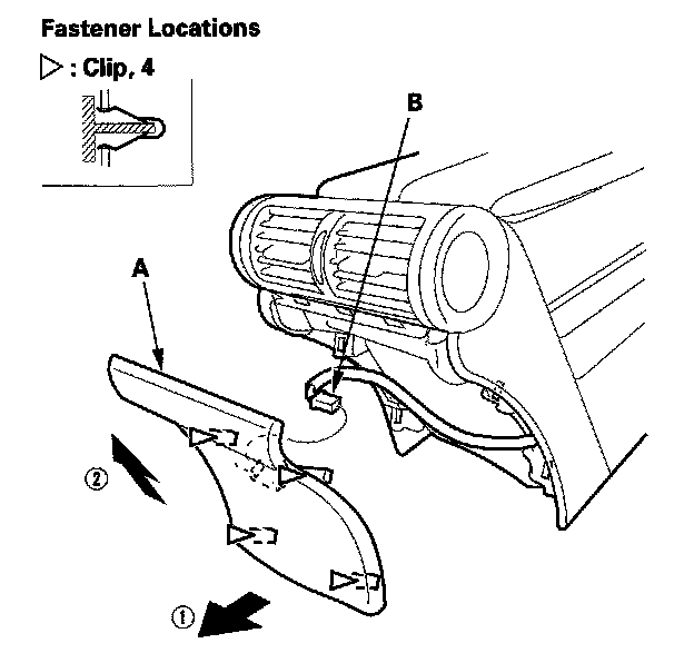 4. Remove the screws, and release the tabs (A), then remove the console outlet trim (B).