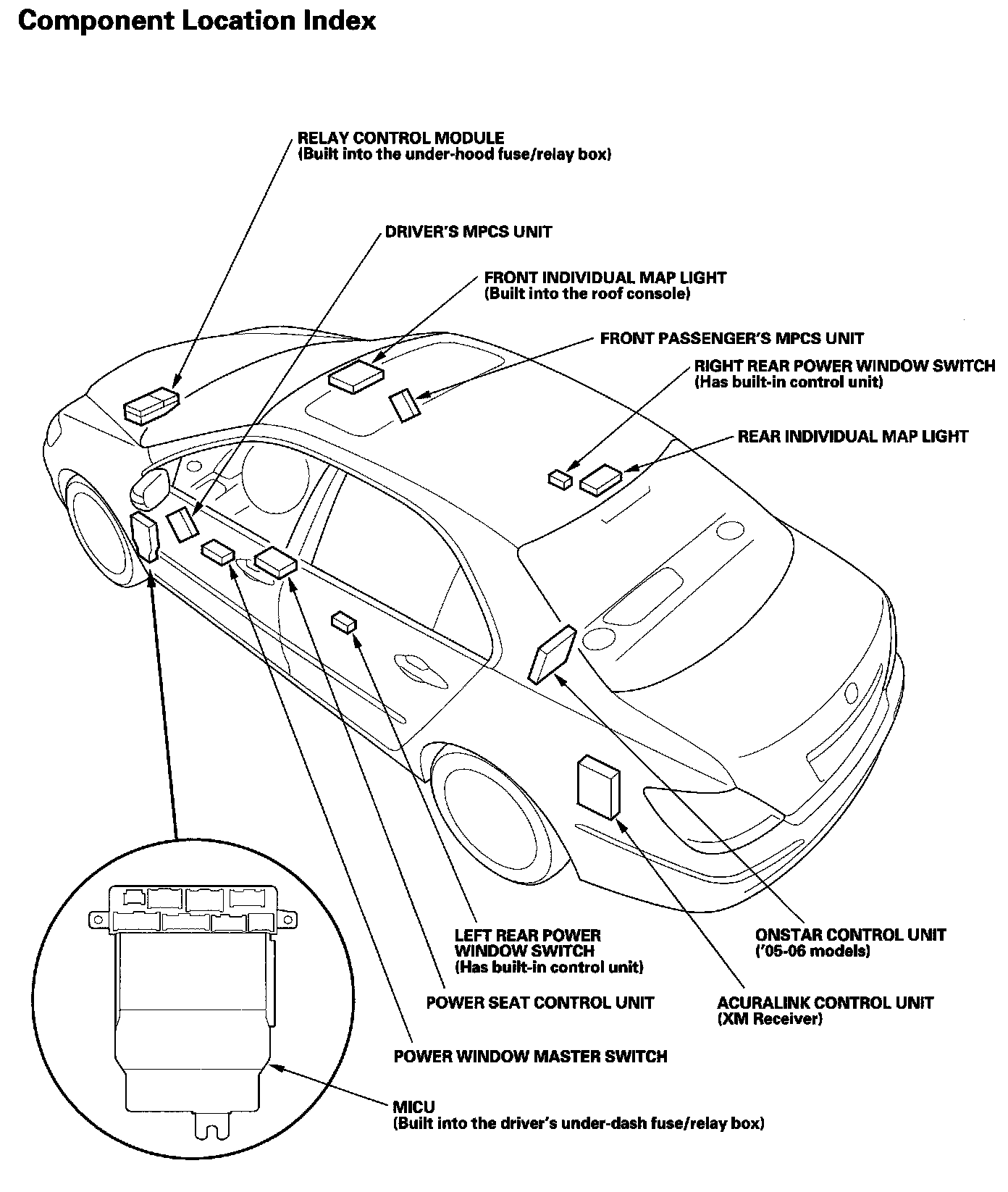 Multiplex Integrated Control System Component Location Index:
