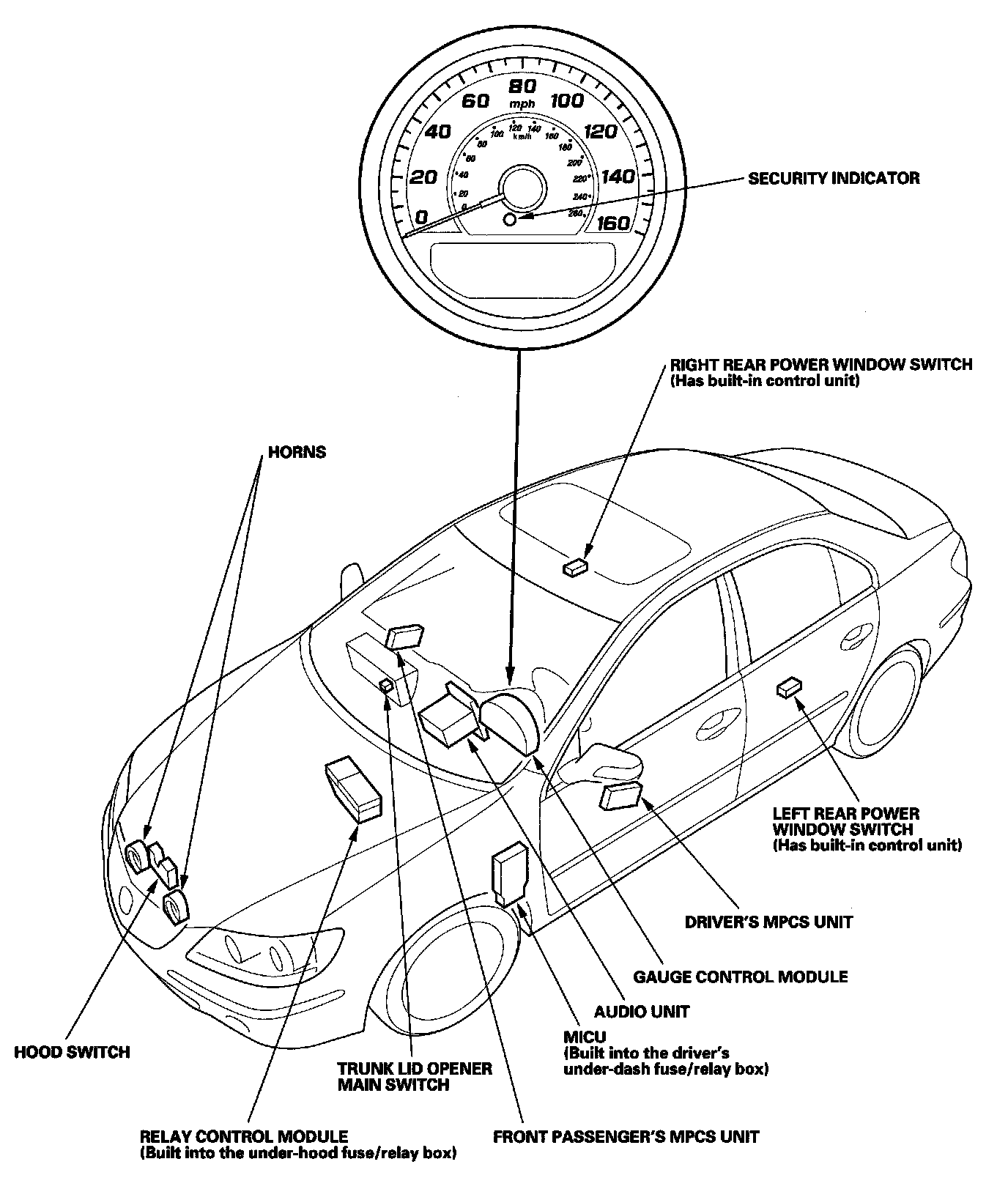 Keyless/Power Door Locks/Security System Component Location Index: