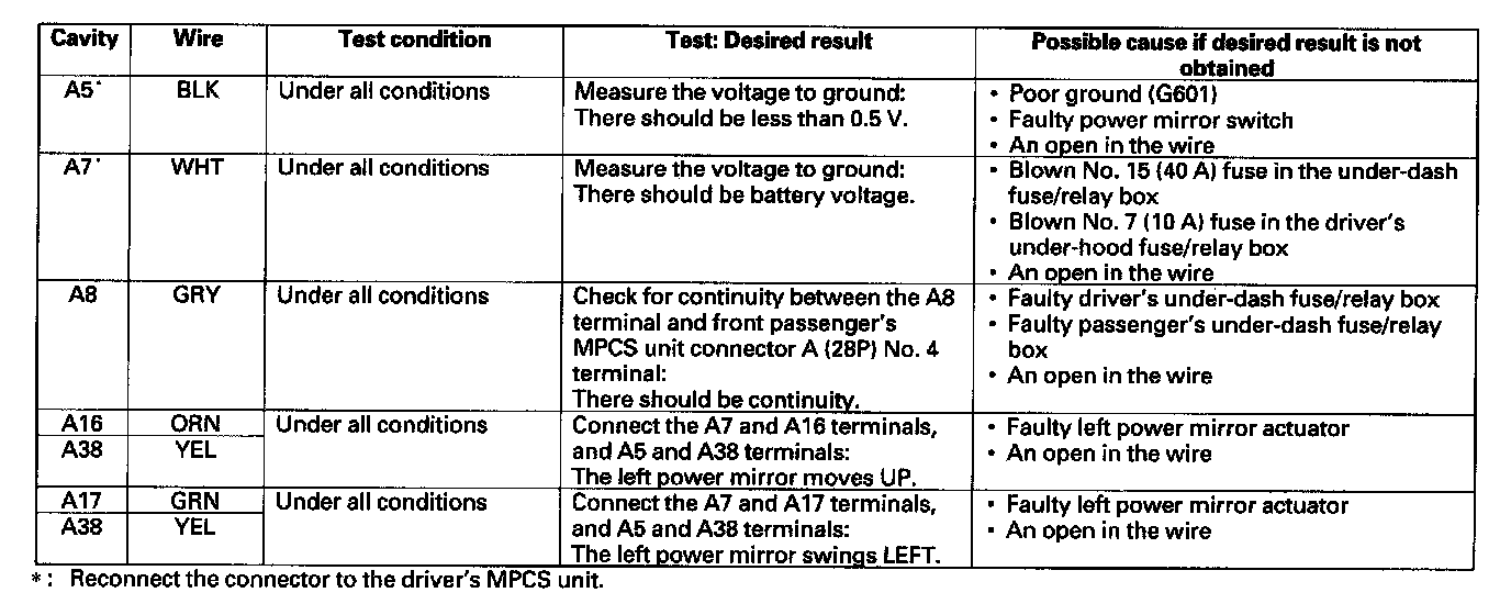Power Mirror Circuit Input TestNOTE: Before testing, troubleshoot the multiplex integrated control system first using B-CAN System Diagnosis Test Mode A.