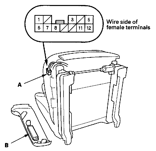 3. Disconnect the 12P connector (A) from the power seat adjustment switch (B).