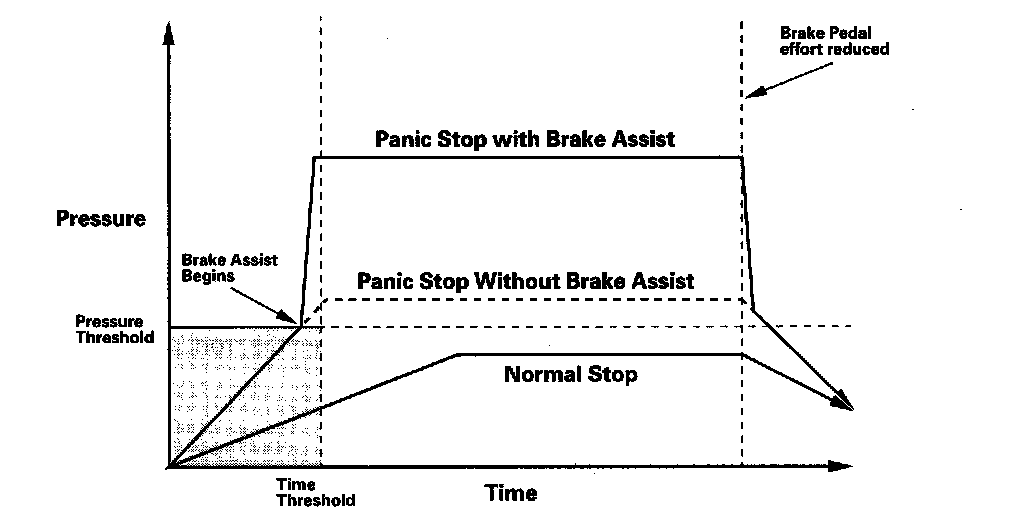 During normal braking conditions, brake assist does not affect brake system pressure.