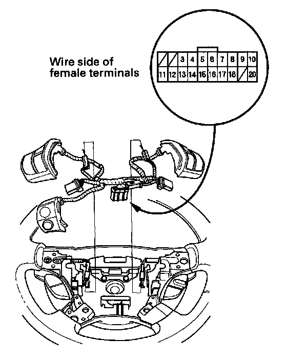 Cruise Control Combination Switch Test/ReplacementThere are SRS components located in this area. Review the SRS component locations, and the precautions and procedures, in the SRS before doing repairs or service.