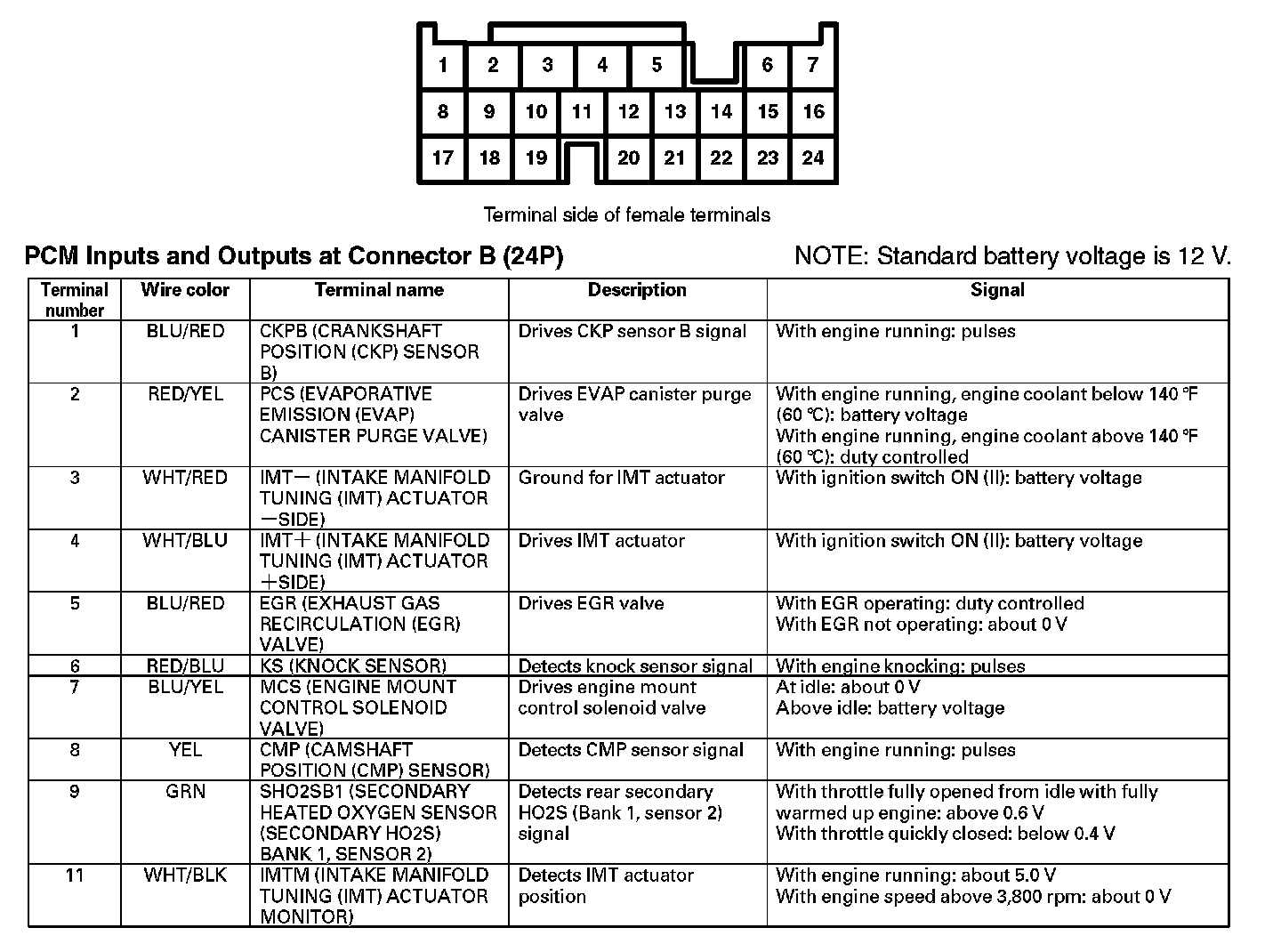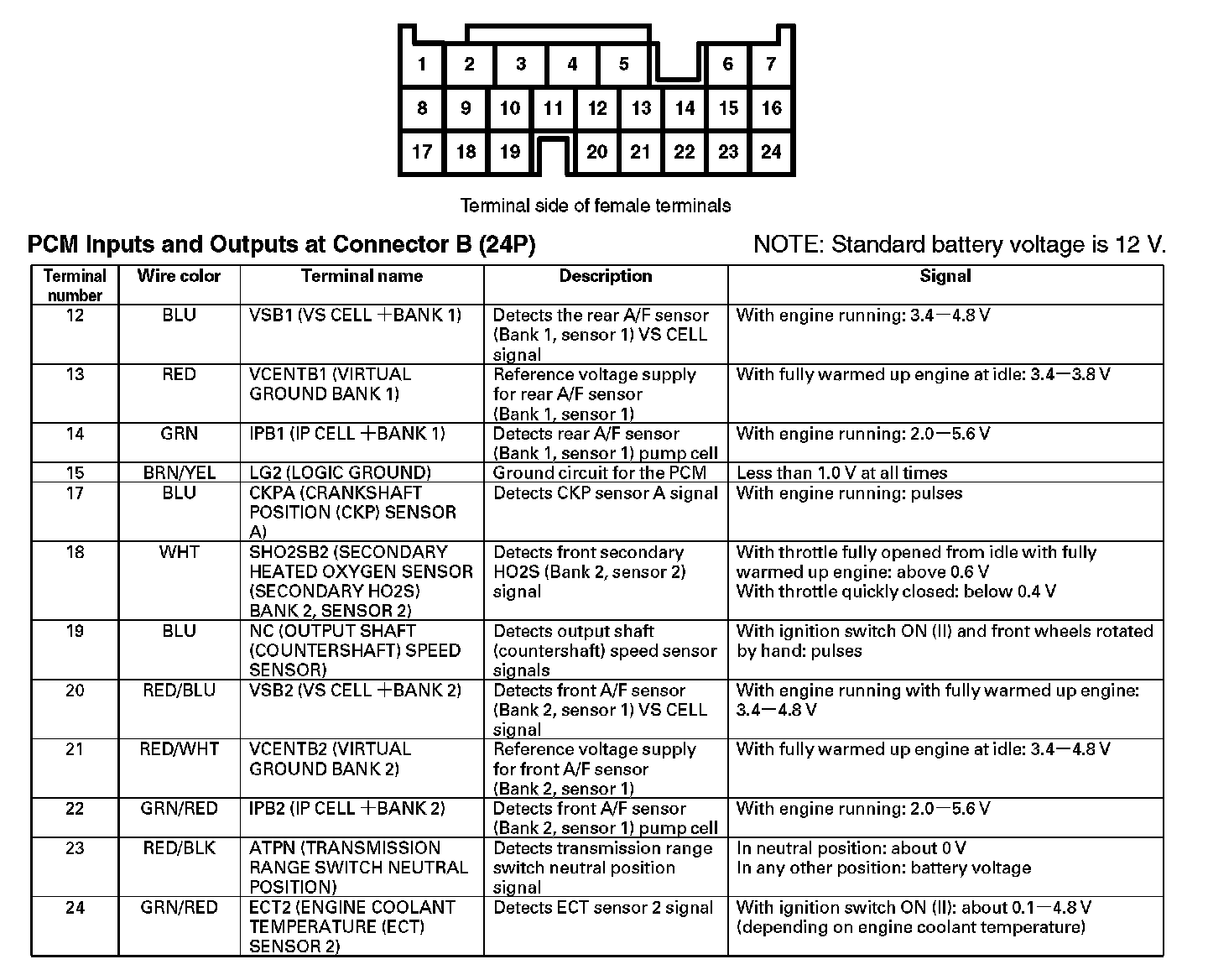 PCM Inputs And Outputs At Connector B (24P) (Part 1):