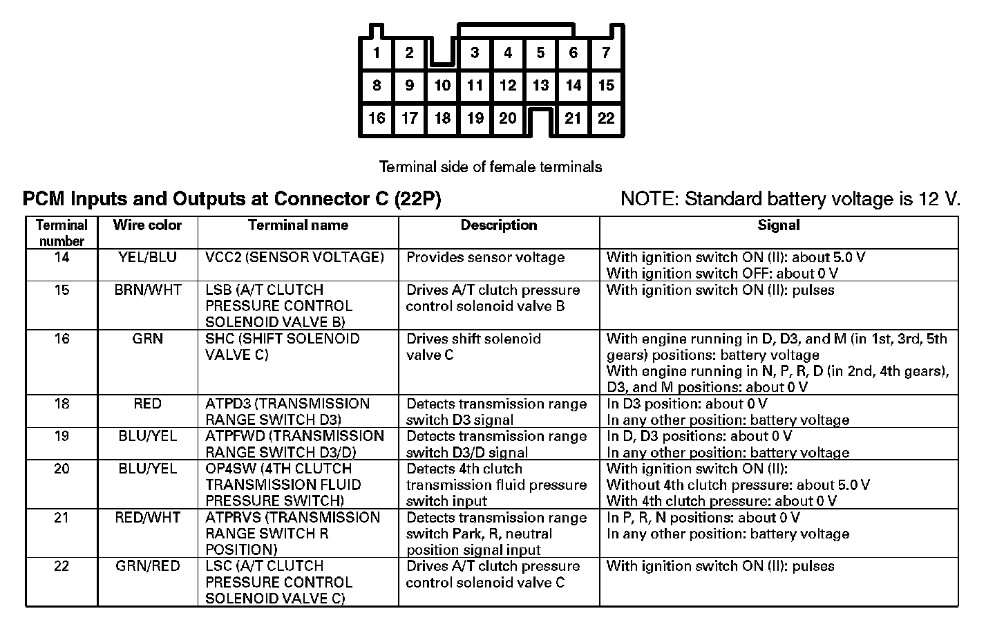 PCM Inputs And Outputs At Connector C (22P) (Part 2):