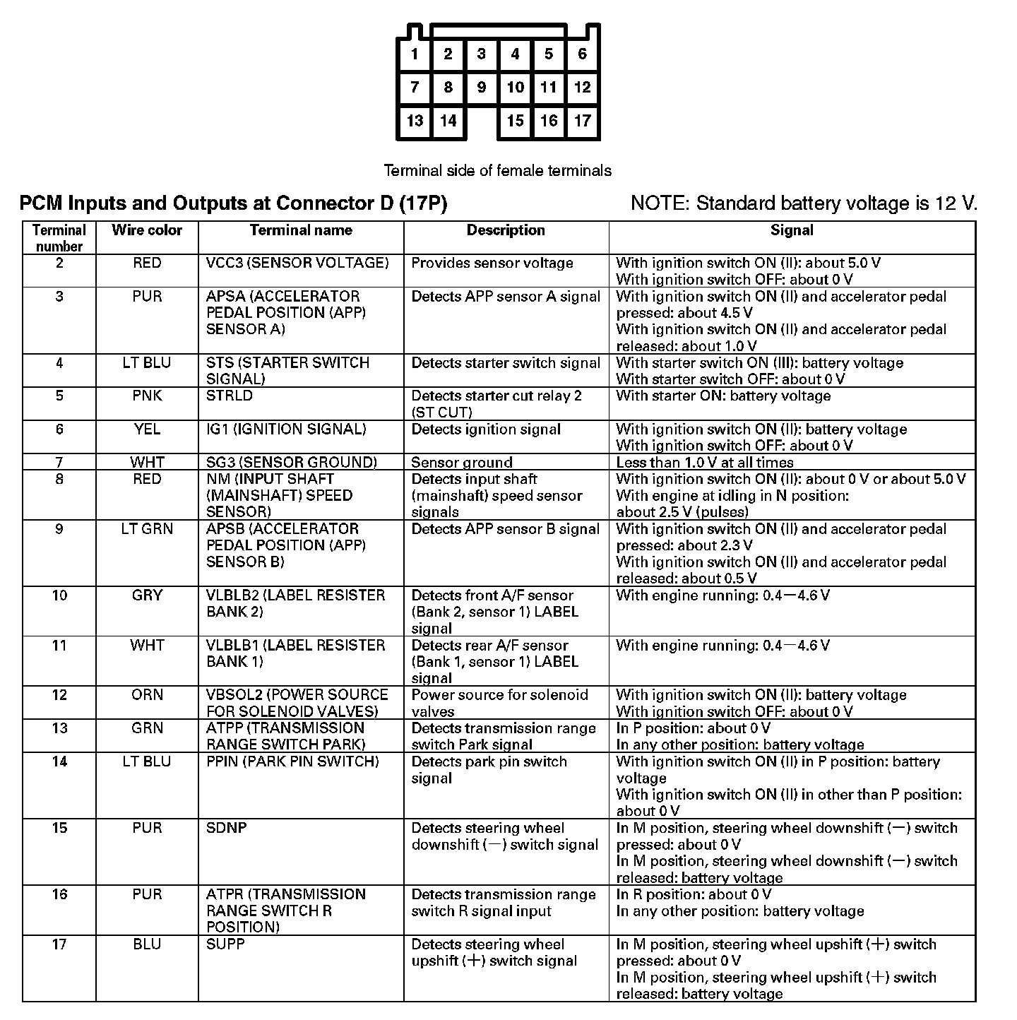 PCM Inputs And Outputs At Connector D (17P):