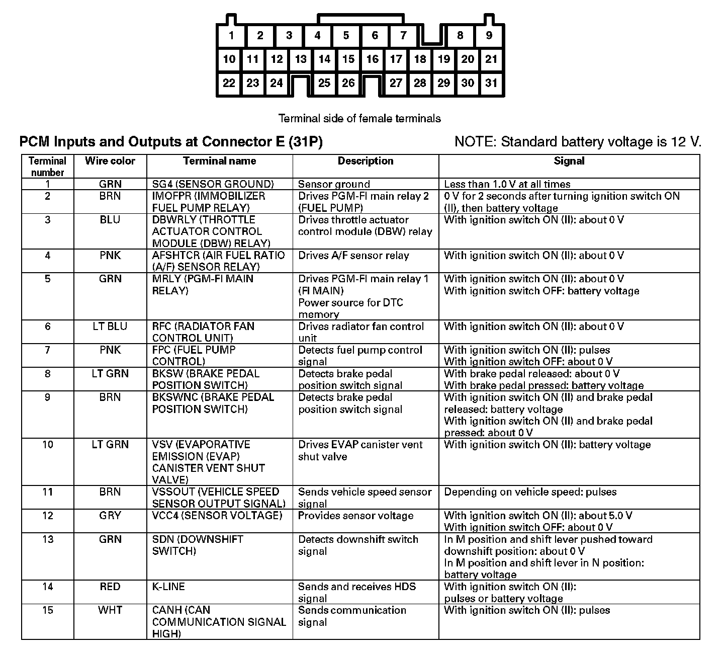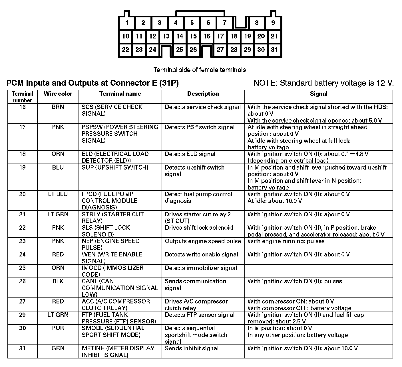 PCM Inputs And Outputs At Connector E (31P) (Part 1):