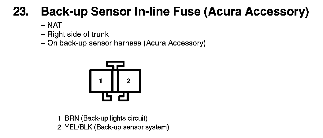 23. Back-up Sensor In-line Fuse (Acura Accessory):