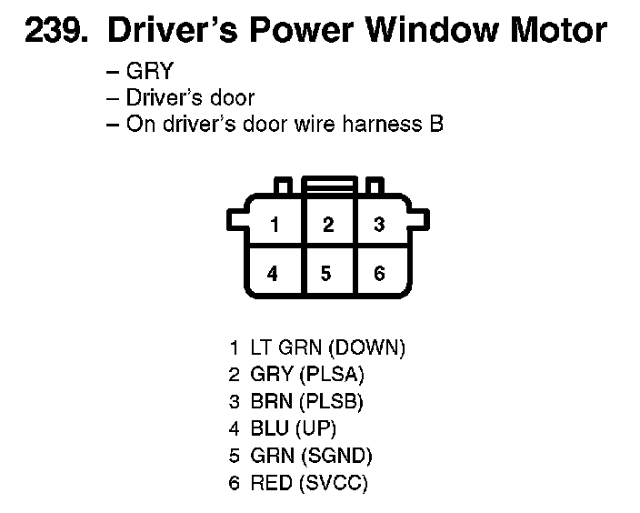 239. Driver's Power Window Motor: