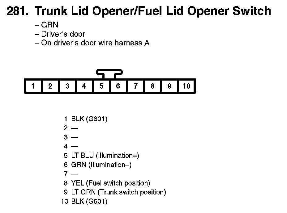 281. Trunk Lid Opener/Fuel Lid Opener Switch: