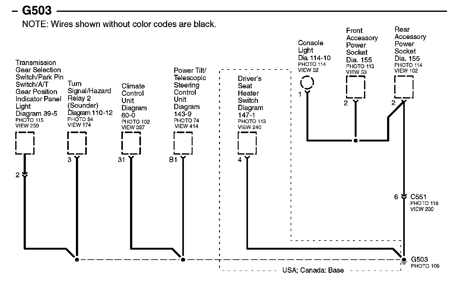 Connector Views: Connector terminal views (references to VIEWS) referred to within these diagrams can be found at Connector Views by View Number. Connector Views By View Number
