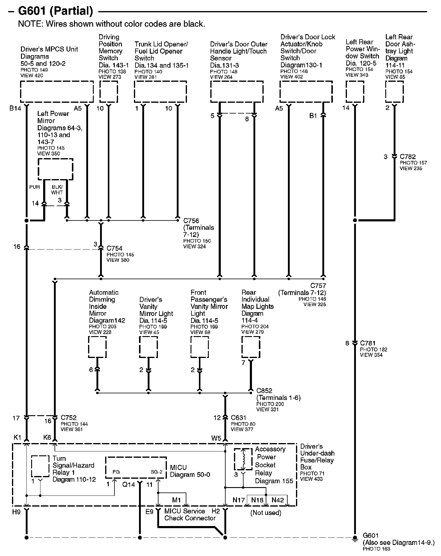 Connector Views: Connector terminal views (references to VIEWS) referred to within these diagrams can be found at Connector Views by View Number. Connector Views By View Number