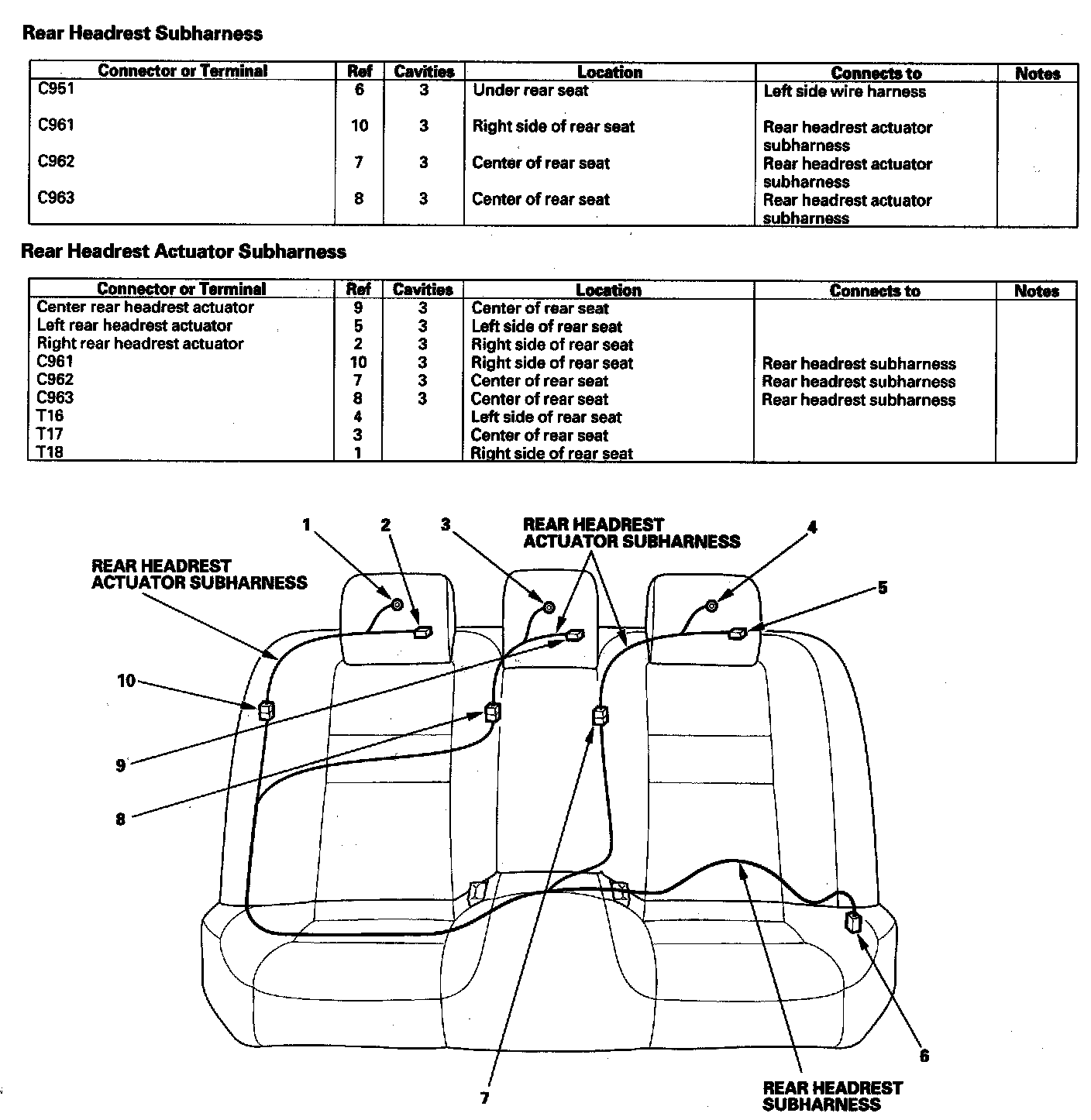 Rear Headrest Subharness/Rear Headrest Actuator Subharness:
