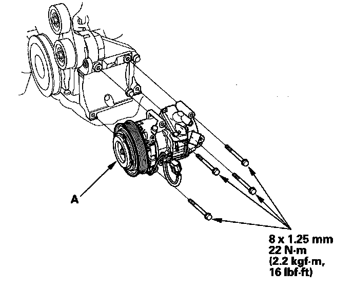 9. Install the A/C compressor in the reverse order of removal, and note these items: