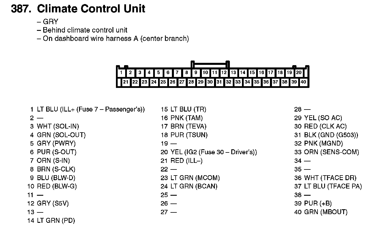 Audio-HVAC Subdisplay Unit Connector For Inputs And Outputs: