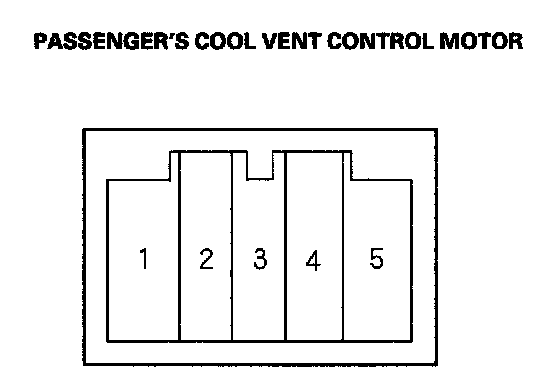 2. Connect battery power to the No. 1 terminal of the passenger's cool vent control motor, and ground the No. 2 terminal; the passenger's cool vent control motor should run, and stop at Shut. If it doesn't, reverse the connections; the passenger's cool vent control motor should run, and stop at Open.