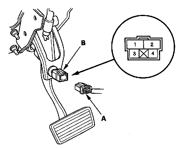 Brake Pedal Position Switch Test1. Disconnect the 4P connector (A) from the brake pedal position switch (B).