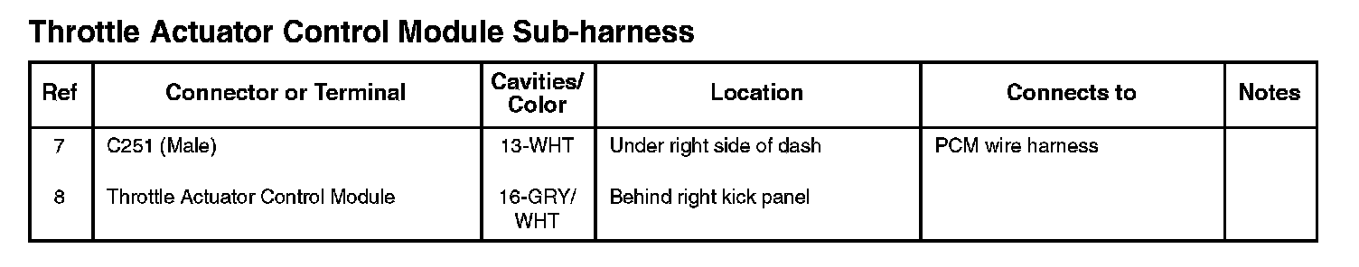 Throttle Actuator Control Module Sub-harness: