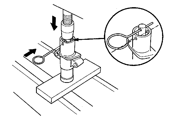 8. Use a hydraulic press to slowly compress the auto-tensioner. Insert a 2.0 mm (0.08 in.) pin through the housing and the rod.