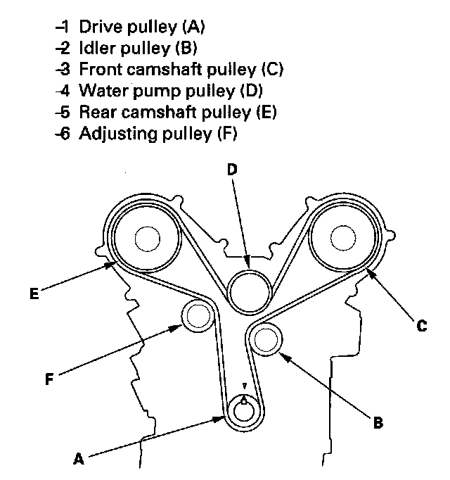 ^ If the camshaft pulley marks are not at TDC, remove the timing belt and repeat steps 3 through 23.