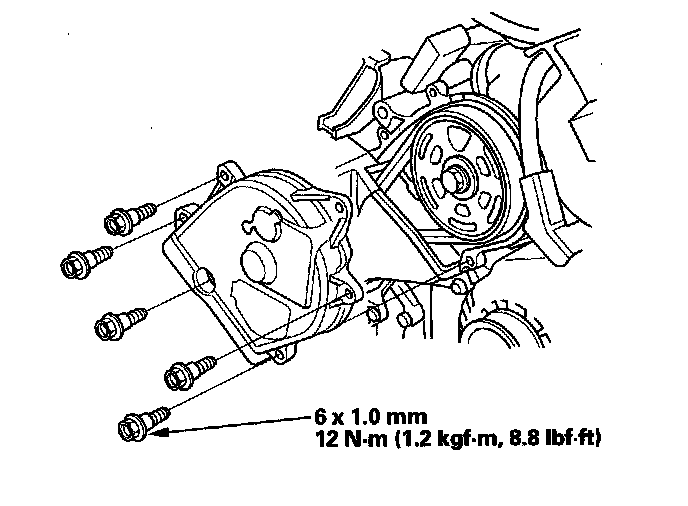 4. Inspect the timing belt for cracks and oil or coolant soaking. Replace the belt if it is cracked or soaked. Remove any oil or solvent that gets on the belt.