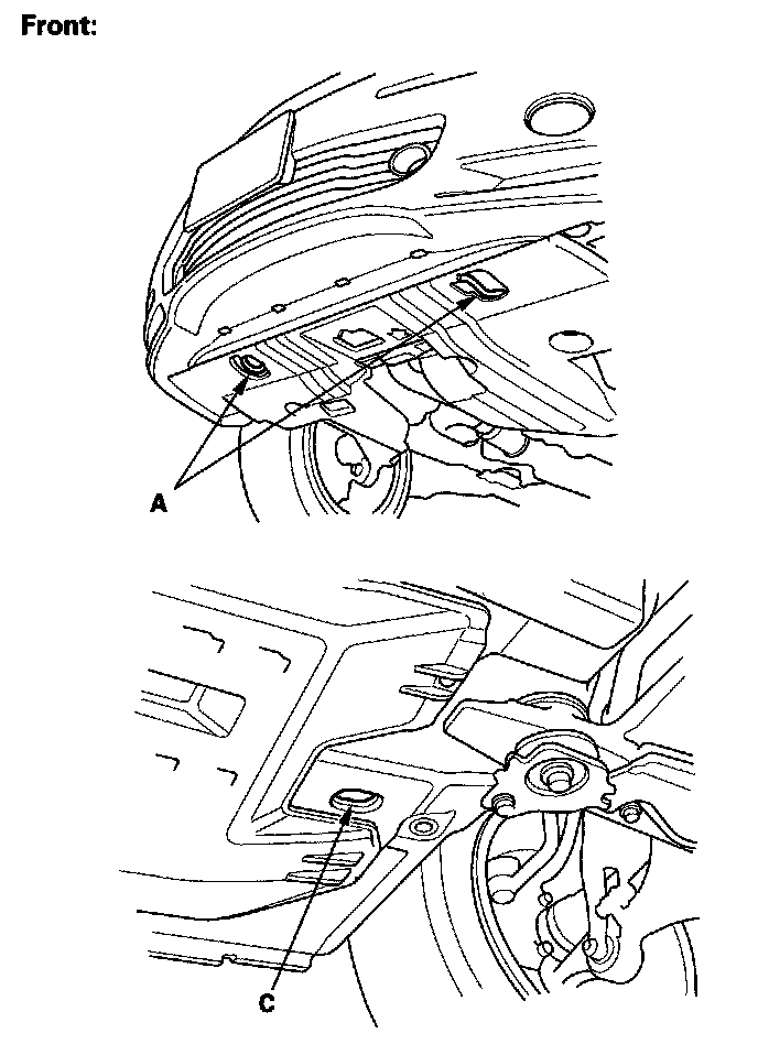 1. Remove the cover (A) from the front bumper.