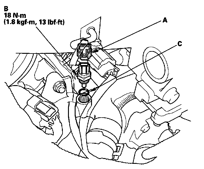 4. Remove ECT sensor 1 (B).
