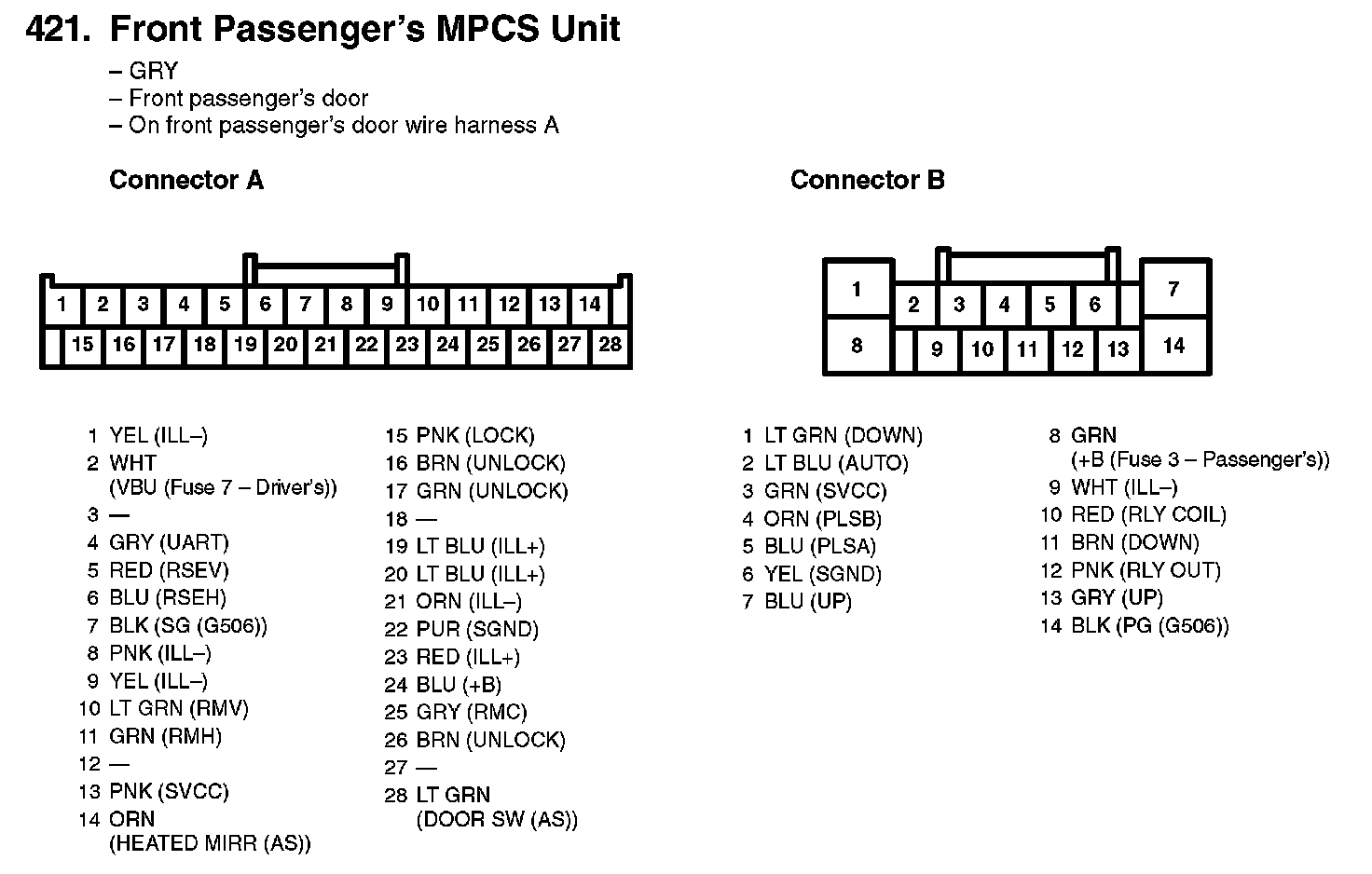 421. Front Passenger's MPCS Unit: