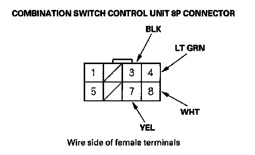 5. Disconnect the 8P connector from the wiper/washer switch, and make these input tests at the connector.