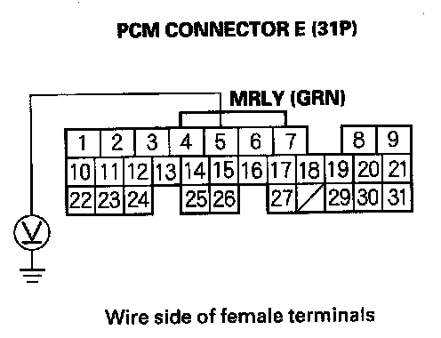 33. Measure voltage between PCM connector terminal E5 and body ground.