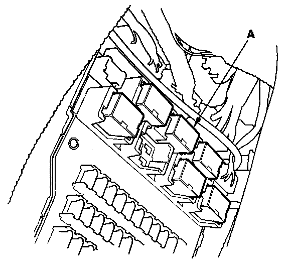 35. Remove the left kick panel. Then remove PGM-FI main relay 1 (FI MAIN) (A) from the driver's under-dash fuse/relay box.
