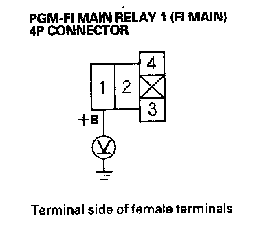 45. Measure voltage between PGM-FI main relay 1 (FI MAIN) 4P connector terminal No. 1 and body ground.