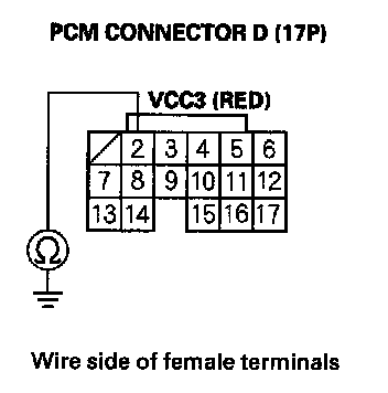 74. Check for continuity between PCM connector terminal D2 and body ground.