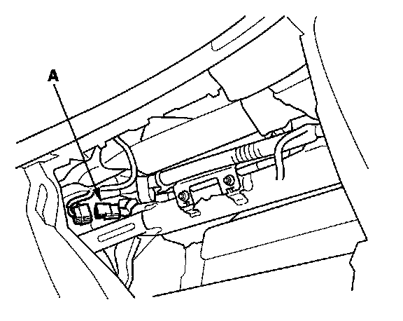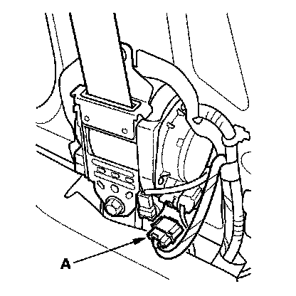 5. Remove the glove box, then disconnect the front passenger's airbag 4P connector (A) from dashboard wire harness A.