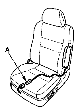 6. Disconnect the side airbag 2P connector (A) from the floor wire harness.