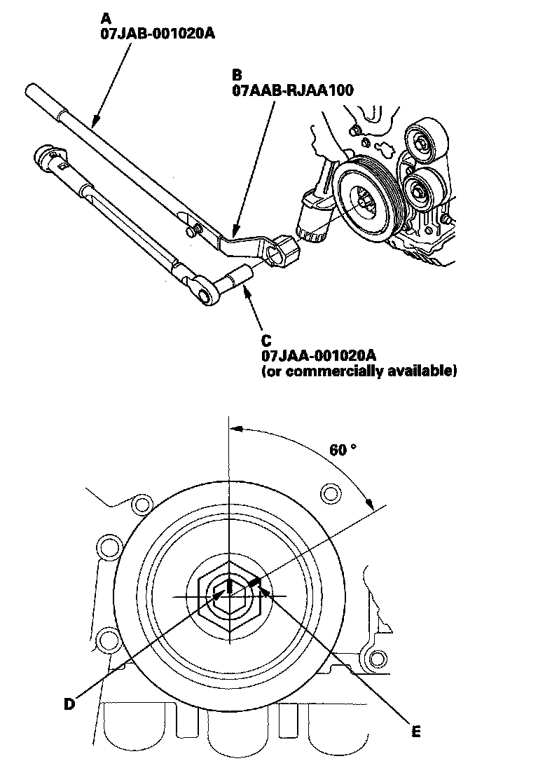 Torque 64 N-m (6.5 kgf-m, 47 lbf-ft) +60°