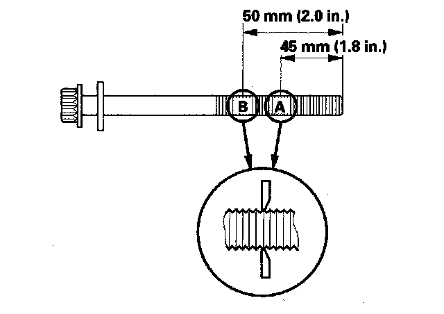 If either diameter is less than 11.3 mm (0.44 in.), replace the cylinder head bolt.