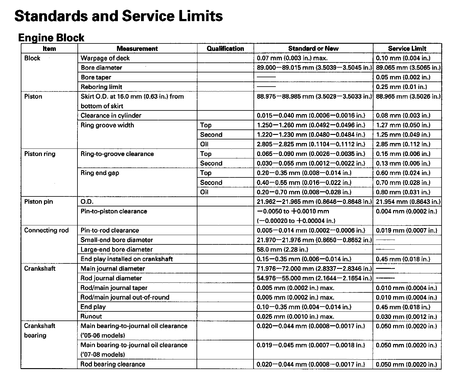 Standards and Service Limits