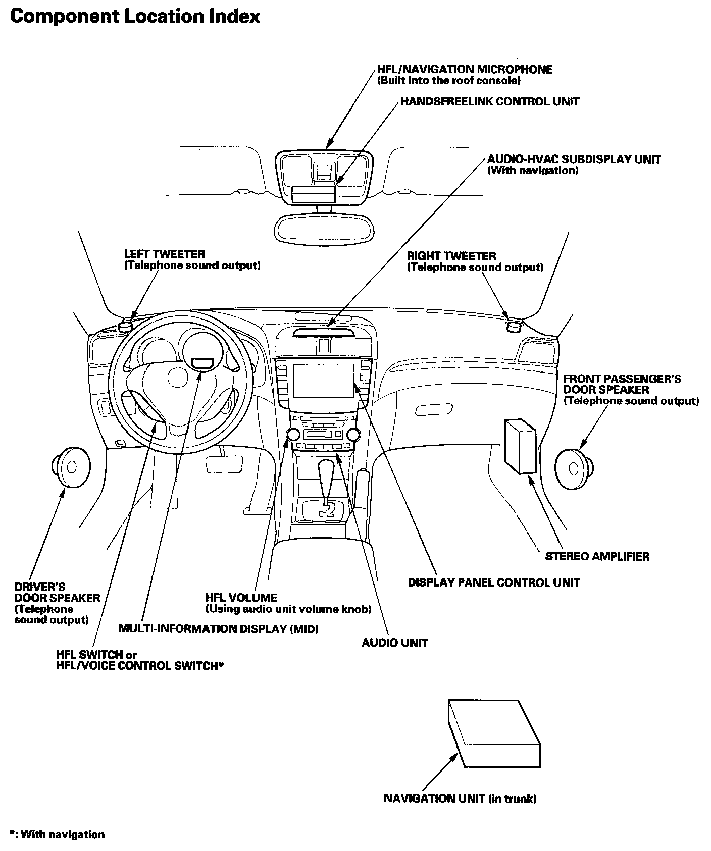 HandsFreeLink System Component Location Index: