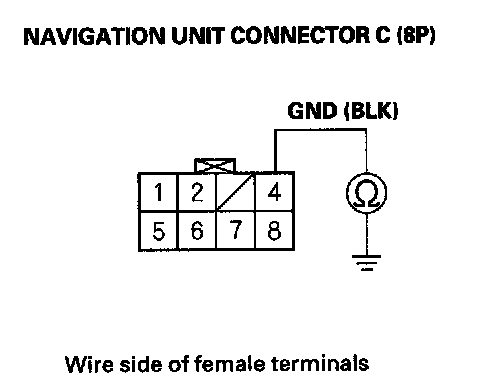 6. Check for continuity between navigation unit connector C (8P) terminal No. 4 and body ground.