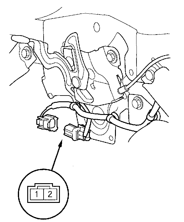 4. Check for continuity between the terminals. There should be continuity between the No. 1 and No. 2 terminals when the hood is opened (latch released). There should be no continuity between the No. 1 and No. 2 terminals when the hood is closed (latch pushed down).