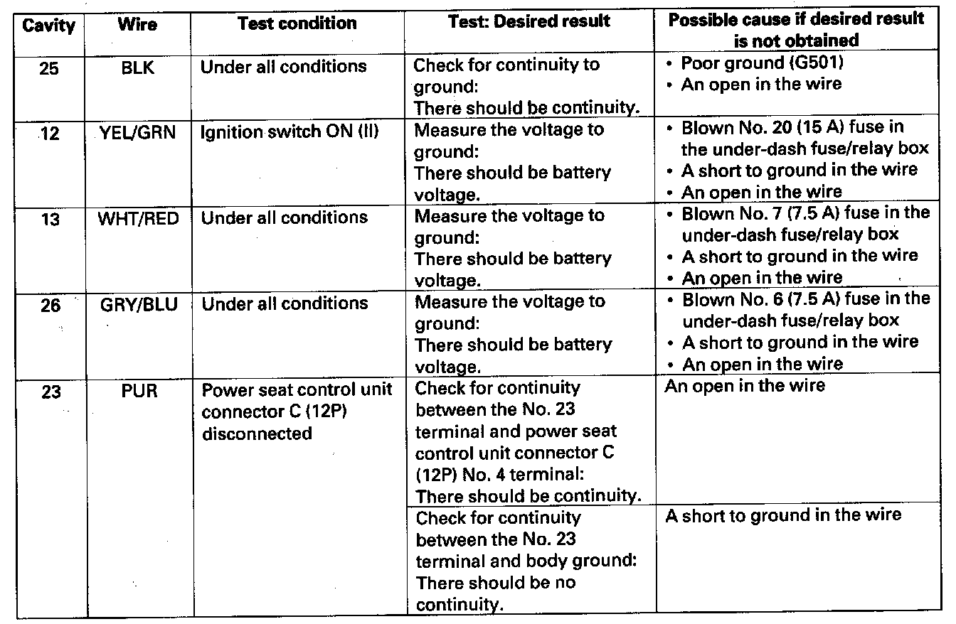 Power Mirror Control Unit Input Test