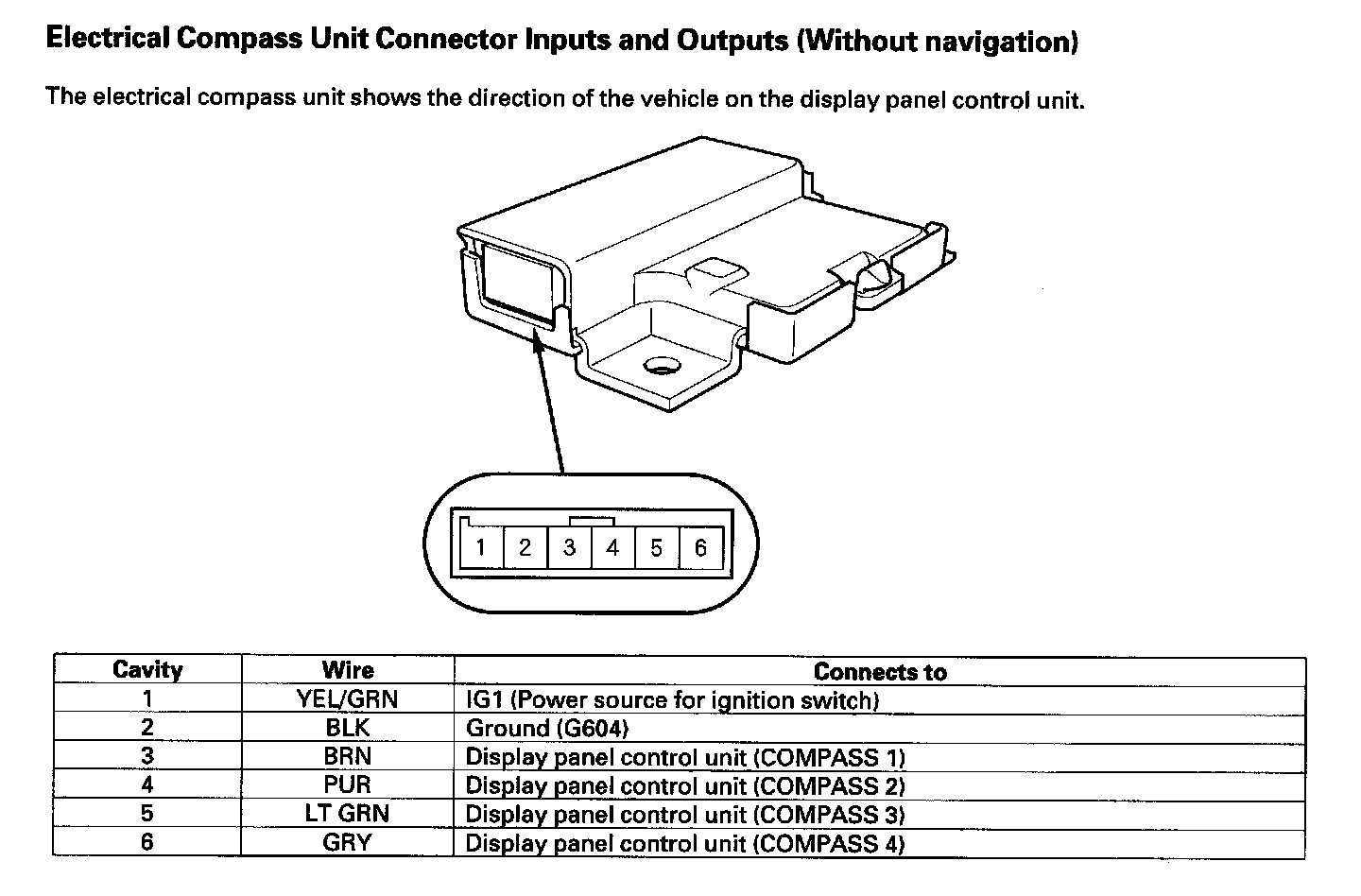 Electrical Compass Unit Connector Inputs and Outputs (Without navigation):