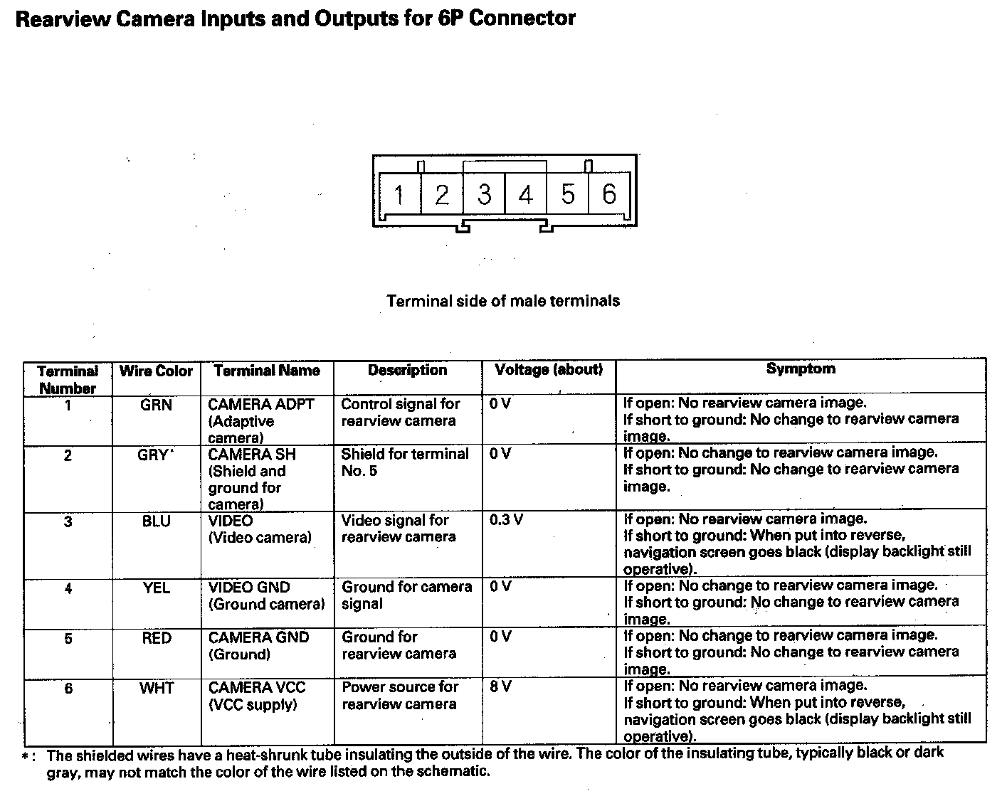 Rearview Camera Inputs And Outputs For 6P Connector: