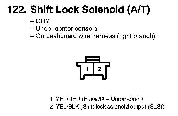 122. Shift Lock Solenoid (A/T):