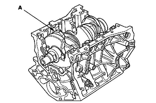 5. Lower the crankshaft (A) into the engine block.